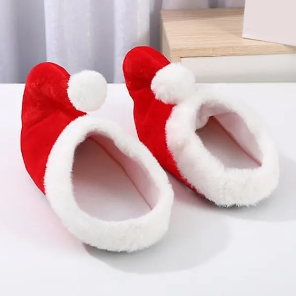 Dessa tofflor har en unik tredimensionell form med en snygg design som garanterat vänder huvuden. Tåspetsen på tofflan liknar en julhatts svans, vilket ger ett extra element av kul och fantasi.
