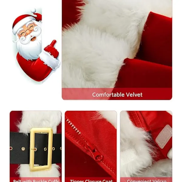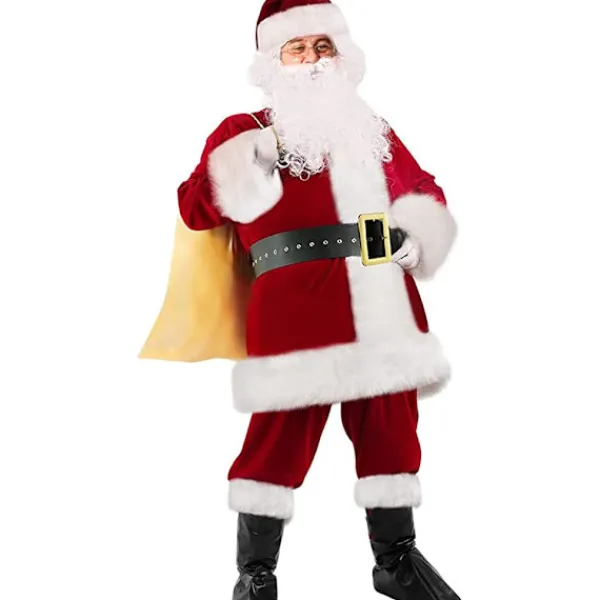 Vad du vill ha: Vuxen Herr Tomte, utsökt plysch, dekorerad med lyxig vit plysch, helfodrad. Som en årlig tradition kan du lägga Tomten i en återanvändbar förvaringsväska. En högkvalitativ sammetstomtedräkt som du kommer att älska att bära i många år framöver. Detta kommer att vara en intressant accessoar som kommer att fånga allas uppmärksamhet!