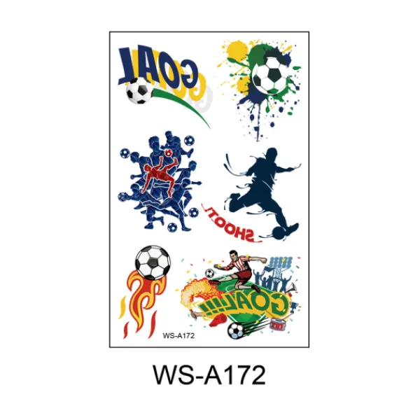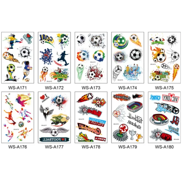 10 tecknade sport fotboll tatueringar VM tema kreativa barn tatuering klistermärken storlek: 7,5*11cm miljövänliga, hudvänliga, vattentäta och svettsäkra, inte lätta att falla av