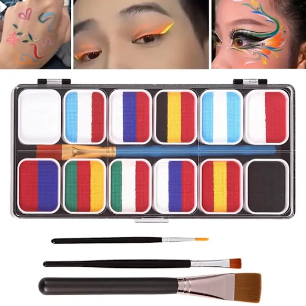 Beskrivning: Hög kvalitet: Tillverkad av högkvalitativt pigment, kan användas för vuxna och barn. Funktioner: Klara färger, vattenlösliga pigment, lätta att färga och lätta att rengöra. 12 Fack: 12 fack med flera färgkombinationer, blandade färger skapar olika speciella mönster genom din kreativitet. Användningsområden: Lämplig för både ansikts- och kroppsmålning, vattenlösligt pigment, lätt att rengöra. Tillfällen: Lämplig för barns födelsedagskostymer, helgdagar, barntemafester, cosplayfester, rollspel, Halloween-sminkning. Specifikation: Material: Pigment Storlek: 21cm x 10.4cm x 1.6cm/8.27inch x 4.09inch x 0.63inch Förpackningen innehåller: 12 Fack Ansikts- och Kroppsfärgpalett Obs: Vänligen tillåt små fel på grund av manuell mätning och olika bildskärmar.