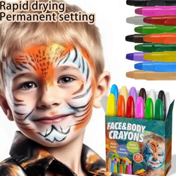 Lätt att använda och bärbar: Ansiktsmålningskit för barn är designade för direkt applicering på huden, vilket gör dem perfekta för kreativitet på språng. Inga extra verktyg behövs, bara ta en krita och börja måla!