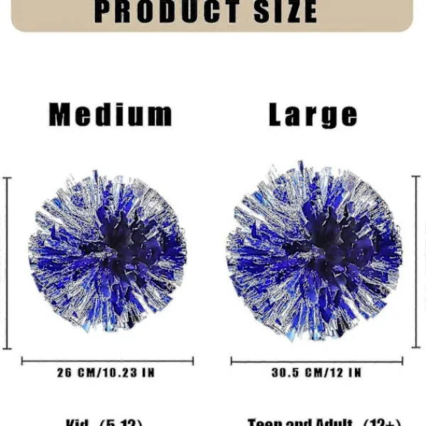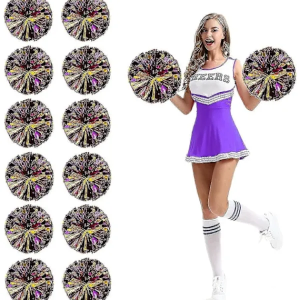 Tillräckligt med & glänsande Pom Poms: Du får 12 stycken metalliska folie cheer pom poms, tillgängliga i olika färger, inklusive silver, guld, blått, guld silver, rött silver, grönt silver, blått silver, lila silver, rött guld, grönt guld, blått guld, rosarosa guld, lila guld och mer, tillräcklig mängd för lagsporter eller personligt bruk. Premiummaterial & Bekvämt grepp: Pom poms är gjorda av högkvalitativ PET-plast med bra utförande för dig att hålla. Lätt fluffad & Full form: Holografiska plastpom poms är designade med fulla och flera streamers, fluffigt utseende och metalliska färger gör dig mer självsäker och attraktiv. Rätt storlek för barn eller vuxna: Vår pom pom har två storlekar, 1. Pom pom-streamers är 26 cm/10,2 tum i diameter, 40 g i vikt, lätta och bärbara 2. Pom pom-streamers är 30 cm/11,8 tum i diameter, 60 g i vikt, också mycket bärbara. Att vara en cheerleader: De är lämpliga för olika lagsporter, som fotboll, basket, baseboll, softball, hockey, friidrott, vattenpolo, tennis och mer, också fina hejarklacksaccessoarer för scenframträdanden, dans, matcher, karneval, firande, fester, etc.