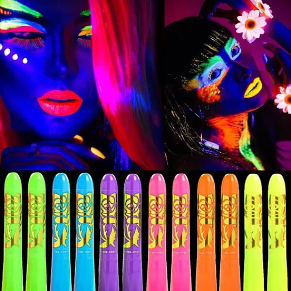 FÅ LYCKA: Detta ansiktsmålningskit för barn kan appliceras på Halloween-smink, förbered dig för semestern eller fest under solen, våra UV-neon ansiktsfärgkritor är också idealiska för många tillfällen som Mardi Gras, Halloween, maskerader och födelsedagsfester, och kan även appliceras som daglig smyckning.