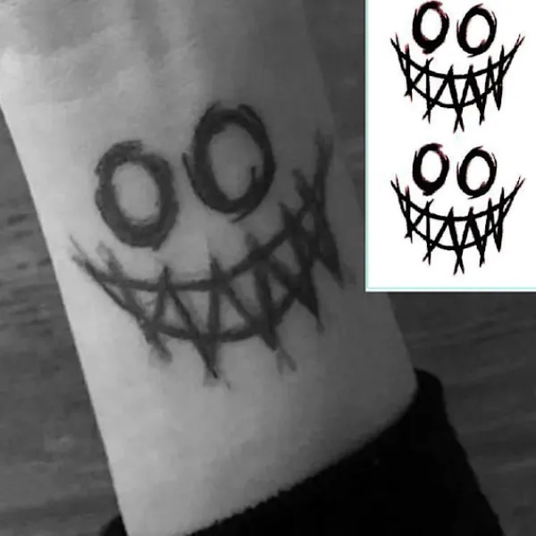 DescriptionOrigin : CN(Origin)Size : as the picture showType : Temporary TattooNumber of Pieces : One UnitModel Number : 0001Size : 5.8*9.8CMColor : Black1pcs Black Clown Temporary Tattoo Women Men Body Art Arm Waist Rose Water Transfer Fake Tattoo Stickers Waterproof Finger TatooProduct name: dark tattoo stickersColor: black and whiteMaterial: water transfer paper, PET filmSize: 5.8*9.6cmquantity: 1pcsHow To Use:1. Cut out the favorite pattern and tear off the transparent paper on the surface2. Stick the patterned side on the skin3. Soak the tattoo paper with a wet sponge (you can also wipe water directly without a sponge)4.20–Remove the white paper on the bottom after 30 seconds (just take it off)5. Air dry naturallyRemoval method:Apply a small amount of alcohol or BB oil on the tattoo, after 10 seconds, wipe it back and forthThe package includes:1*Tattoo Sticker