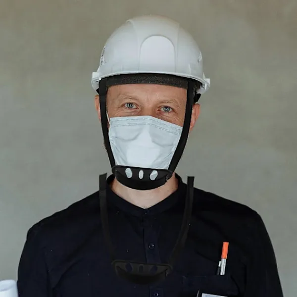 -Dubbel öronbandsdesign: säkerställer en säker passform, vilket effektivt förhindrar att skyddshjälmen oavsiktligt faller av under arbetet, vilket ökar säkerheten