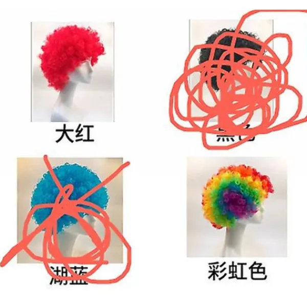 Beskrivning Perukerna är de perfekta accessoarerna för att komplettera din clowndräkt! Dessa livfulla och färgglada peruker är designade för att ge dig mer glädje. Tillverkade av kvalitets-k-silke och p-silke, är perukerna mjuka, bekväma och lätta att bära. Funktioner -Färg: Som Visat-Material: K-silke, p-silke-Storlek: 30,00X24,00X13,00cm/11,79X9,43X5,11in- Olika stilar: Det finns olika färger tillgängliga för dig att enkelt ändra dina stilar och möta olika behov.- Mjuk och bekväm: Perukerna är lätta och mjuka, ingen extra belastning på huvudet, inte lätt att trassla.- Lämplig för olika tillfällen: Du kan bära perukerna vid olika tillfällen, som Halloween, kostymfester, rollspel, etc.- DIY-frisyrer: Dessa peruker kan klippas, stylas och färgas efter din smak, vilket gör att du kan skapa unika frisyrer.- Lätt att bära: Du behöver inte förbereda andra verktyg för att bära perukerna, ingen skada på hårrötterna, bekvämt och snabbt.Förpackningslista: 2 x peruker