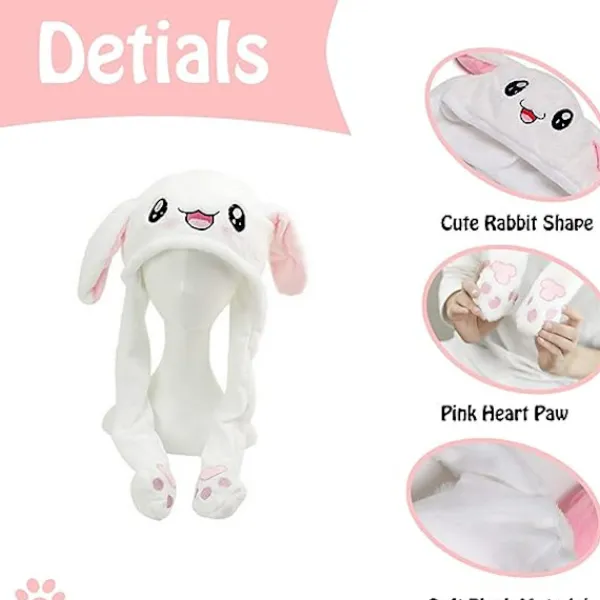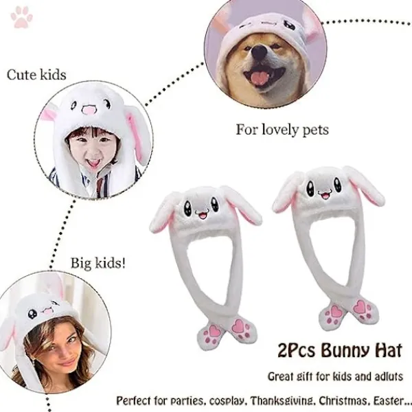 2 st söta kaninhattar med rörliga öron Rolig kaninhatt Mjuk hoppande djurhatt Barnfest för kvinnor Julgåva Vit [Oemotståndligt roligt] Vår kaninhatt är inte bara en dekorativ hatt, utan också en plyschleksak designad för underhållning. Denna plyschkaninhatt har två öron och kan röra sig upp och ner genom att trycka på tassarna. Den ser ut som en levande kanin. Den är bedårande. [Hoppande öron-design] Tryck på tassen så hoppar örat. Släpp tassarna och spetsa öronen. Det är enkelt för dig att leka och kontrollera. Designen är enkel och intressant. [Intressant present] Kaninöronplyschhatten är den perfekta presenten till barn, vuxna, flickor, pojkar och kvinnor. Den är den bästa presenten till fru, flickvän, familj, kollegor och vänner. När folk bär en kaninhatt och rör på öronen får det folk att skratta. [Lämplig för alla intressanta dagar] Kaninhatten är en härlig klädsel för födelsedag, Thanksgiving, jul, halloween, påsk, alla hjärtans dag och andra intressanta dagar. Folk gillar det. Du kan bära den i rollspel, olika högtidsfester eller vissa aktiviteter. Lämplig för vinter, vår och höst. [Storlek och material] Paketet innehåller två vita kaninhattar, 50x30cm/19.7×11.8in (längd x bredd), en storlek för alla. Tillverkad av högkvalitativa plyschmaterial.