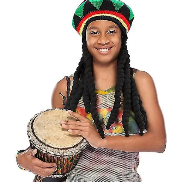 Färgglad Rasta-hatt: består av jamaicanska 3 ljusa traditionella färger, röd, gul och grön, med svart dreadlocks-peruk, söt och speciell för barn, familj och vänner