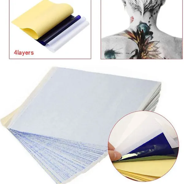 1. Transferpapper låter dig rita eller stencilera bilder från originalkällan på transferpapperet och sedan på huden. – Den kan användas med matrisskrivare eller helt enkelt ritas över en originaldesign med en kulspetspenna för handritade stenciler. – Eller använd detta tatueringsstencilpapper med en thermal . Kopiera bilder på papper med thermal . – Med en bra överföringseffekt. Passar för artister, tatuerare, tatueringsälskare och så vidare.