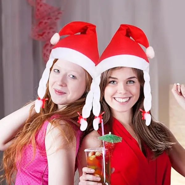 Förpackning: Du får tre julhattar med fläta. Denna julhatt ger dig en riktig julstil, och den matchande flätan ger en touch av mode till din stil.