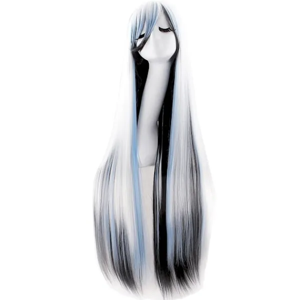 39″ 100cm Anime Kostym Lång Rak Cosplay Peruk Fest Peruk (Vit/Blå/Svart)