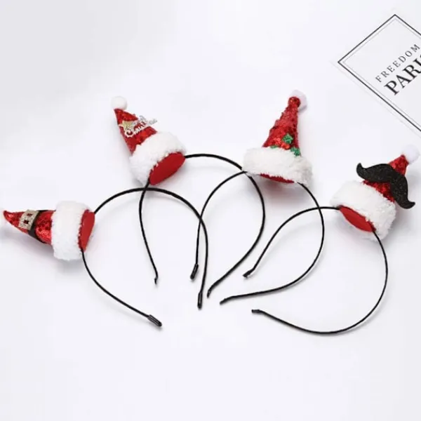 【Juldiadem】 – Dessa juldiadem består av 4 olika speciella mönster, inklusive ett Santa Claus-diadem med paljetter, ett Santa Claus-diadem med bokstäverna ”Merry Christmas” och ett skäggdiadem.