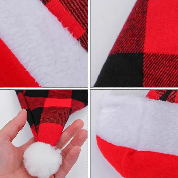 Setet innehåller: varje förpackning innehåller 4 stycken röd- och svartrutiga tomteluvor med tillräcklig tjocklek, tillräckligt för att möta din användning och ge dig värme och en glad atmosfär under julen