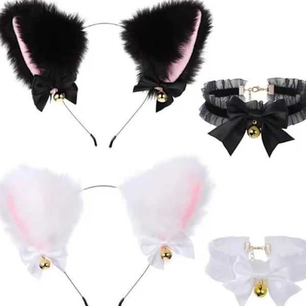 Paketet innehåller: 1*Svart katt+1*Vit katt räv fuskpäls öron pannband 1*Svart krage+1*Vit krage.