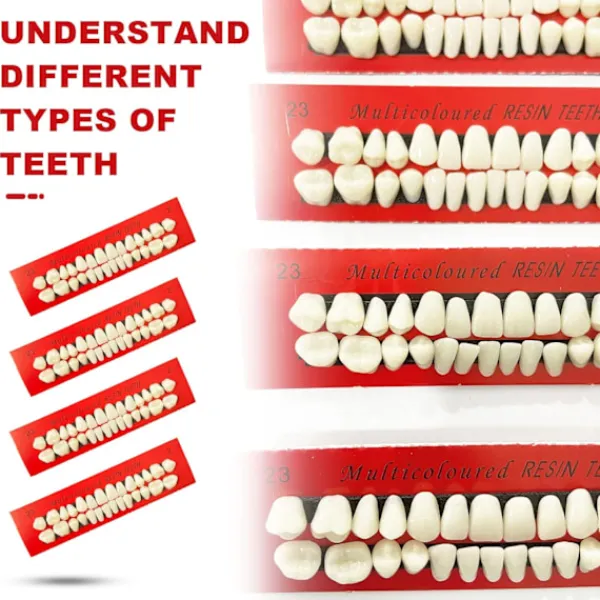 Diverse tandtyper: dessa falska individuella tänder finns i flera tandtyper och storlekar, som små, medelstora och stora, de kompletta tandformerna är praktiska för dig att förstå olika typer av tänder