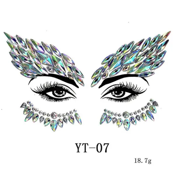 Sätt dina stenar på ditt ansikte och din kropp; använd dem som bindi på din panna, ögonbryn, kinder, runt dina ögon, mage, bröst, rygg, armar, händer och till och med ditt hår. Även på en helt mörk natt avger dessa ansiktsjuveler ett starkt sken.