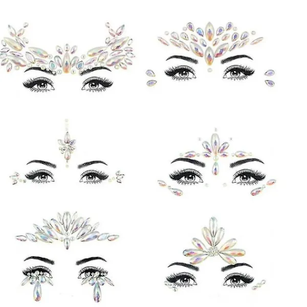 6 ark Noctilucent Rhinestone Ansiktsdekaler Självhäftande Kristall Kroppsstenar för hud ansikte kroppskonst.