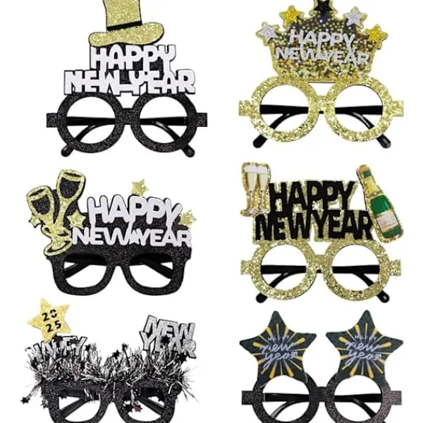 Paketet innehåller: Detta stora paket innehåller 6 st Nyår 2025-glasögon i 6 utföranden. 100% helt nya och högkvalitativa nyårsfestglasögon.