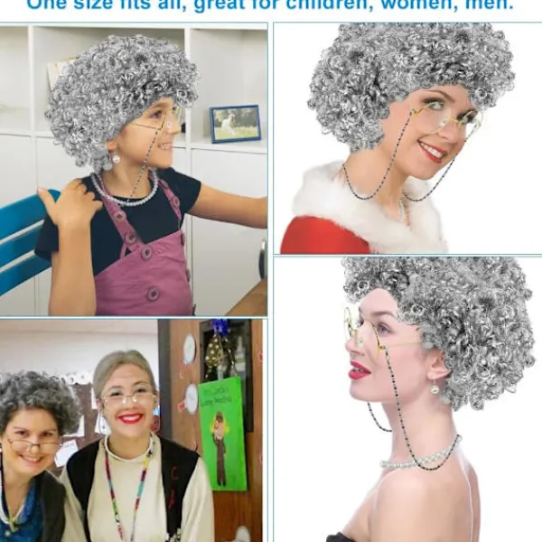 【En paketlösning för mormorsklädsel】: Du får 7 delar mormorsklädseltillbehör, peruk, perukmössa, pärlhalsband, pärlarmband, pärlörhängen, glasögon, glasögonkedja, bära dem och du kan omedelbart ändra ditt utseende. Ett stort presentpaket kan slutföra Cosplay. Dessa personliga mormorsdräkttillbehör kommer säkert att glädja