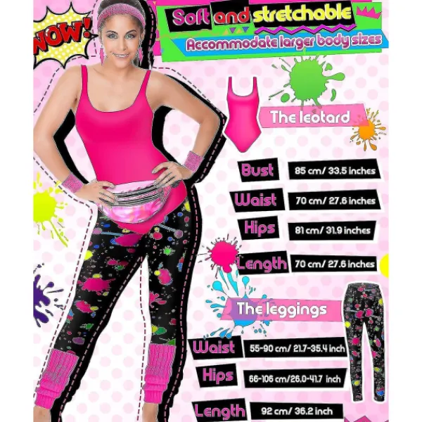 Polyamid Komplett 80-tals kostymset: 80-tals träningsklädseln innehåller 1 del retro 80-tals eller 90-tals baddräkt, 1 par joggingleggings, 1 par benvärmare, 1 pannband, 1 par handledsvärmare, 1 par örhängen och 1 magväska, som kan tillgodose dina behov av 80-tals kostymtillbehör. Retro och attraktiv: 80-tals träningskläderna för kvinnor har en retrostil och en ljusrosa färg, coola och bekväma; Du kan bära dem i kombination eller separat, för att matcha bra med dina skjortor, klänningar, linnen och blusar, och visa din personliga charm. Stretchiga och bekväma: dessa 80-tals träningskläder har en fin elasticitet, är mjuka att ta på, bekväma och lätta att bära, bleknar inte lätt, går inte sönder eller deformeras, kan förvaras och användas under lång tid. Rätt storlek för de flesta: 80-tals outfiten för kvinnokläder är designad i lämpliga storlekar, stretchig och flexibel, lätt att ta på och av, kan passa olika kroppstyper; Den kan inte bara framhäva din figur, utan också ge dig en bekväm användarupplevelse. Lämplig för många fester: 80-tals träningskläderna för kvinnor är lämpliga för 80-tals temafester, utklädningsfester, discofester, Halloween-kostymer, dansfester, bandframträdanden, vardagskläder och mer, och ger mer kul och charm till din fest, och skapar vackra minnen.