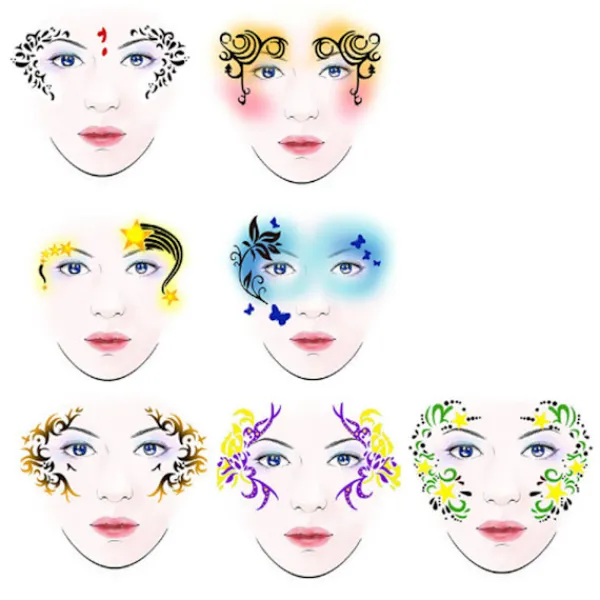 1 x 7 stilar/set Ansiktsmålningsstencil