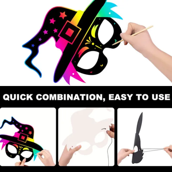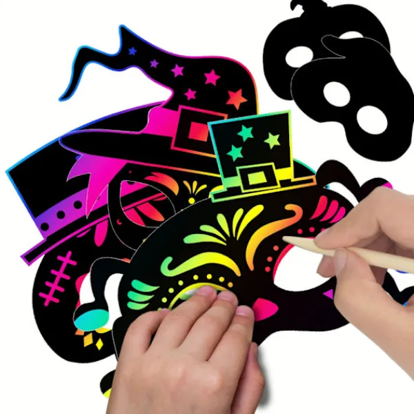 1、1. Material: Regnbågens skrapkonst ansiktsmasker är gjorda av kartongmaterial, regnbågens färger och mönster döljer sig under den matta beläggningen. Ett högkvalitativt träskrapverktyg kan skrapa den svarta beläggningen för att göra djurutskärningarnas ansiktsmasker färgglada. Repen är elastiska och hudvänliga, lätta att passa ansiktsmasker runt huvuden för barn och vuxna. 2、2. Så här använder du: Använd denna trä dubbelsidiga skrapstift för att skrapa bort den svarta matta beläggningen för att se den färgglada beläggningen som döljer sig under den; Ta ut det elastiska repet och för det genom de små hålen på båda sidor av dina ansiktsmasker; När du har fäst det på ansiktsmasken kan du sätta ansiktsmasken på ditt ansikte. 3、3. Bra gör-det-själv-tillbehör: Detta är en fantastisk aktivitet för barn att utveckla sin egen fantasi. Måla ditt eget mönster med din egen fantasi, vilket blir ett speciellt hantverk, trevligt för interaktion mellan familjemedlemmar. 4、4. Användning: Perfekt för Halloween-utklädningstillbehör, rollspel, sketcher etc. Passar även för pysselverksamhet, konstundervisning, skolprojekt och andra målarhantverksprojekt, skapa den mest fantastiska regnbågsfärgade unika ansiktsmasken med dina egna mönster. Oumbärlig födelsedagspresent eller festivalpresent till barn! 5、5. Paketet ingår: Paketet innehåller 8 olika former: Fladdermus, pumpa, spindel, häxa, katt, skelett och spöke. Och med de elastiska banden och träpennan.
