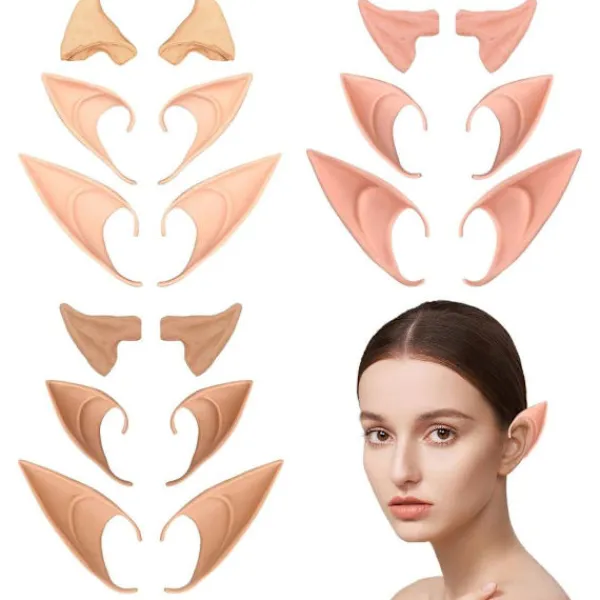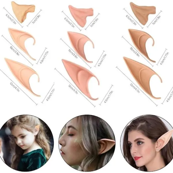 Unik design: Setet innehåller 9 par alvöron i olika stilar (3 färger × 3 storlekar), passar de flesta öronformer och kan fästas direkt på öronen! Mjuka latexöron kan stylas som en alv, älva eller litet troll.