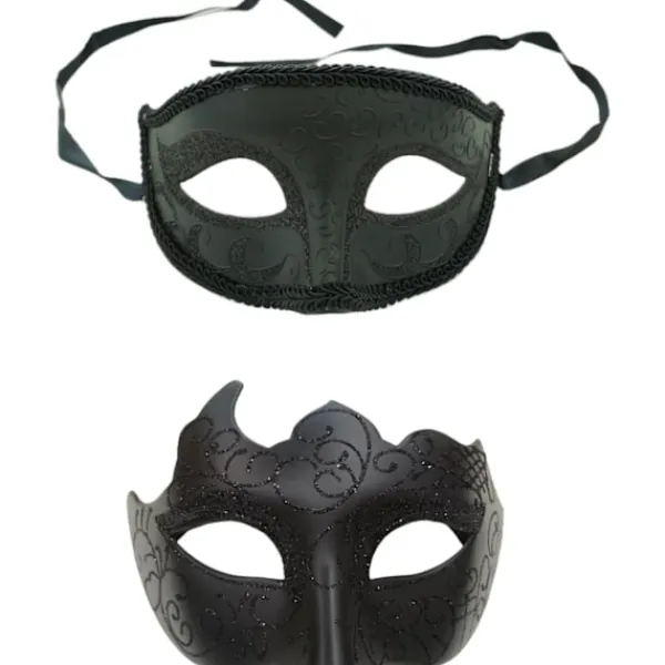 Maskeradmasker för Män Du får två svarta maskeradmasker för män och par. Våra svarta plastmaskeradmasker är båda perfekta för män, för kvinnor eller för par. Perfekt som gåva eller för personligt bruk: Perfekt för herrarnas fest, svensexa, dejt för par, att bära som karnevalsmask eller mardi gras-mask, det kan vara en fin present till dina nära och kära. Lämplig för olika tillfällen: Våra venetianska masker för män är lämpliga för dejter för par, Alla hjärtans dag-fest, maskeradfester, Mardi gras, festivaler, karnevalstema-fester, formella baler, Halloween-fester, bus eller godis, cosplay, teaterpjäser, modevisningar, skönhetstävlingar, jul- och nyårsfester, möhippor och många andra evenemang och tillfällen. Unik venetiansk design Med en vintage venetiansk design kommer dessa maskeradkostymer för män och par aldrig att gå ur stil. Dessa silvermaskeradmasker ger en edgy och mystisk känsla till din ensemble, vilket gör män, kvinnor och par mer charmiga och imponerande i mängden. Justerbar storlek: Bekväm, lätt, en storlek passar de flesta. Maskeradmaskerna för par är gjorda av flexibel plast, den kan justeras för hand för en bättre passform. Ögonhålen är perfekt dimensionerade. Dessa maskeradmasker för män, en med elastiskt band och den andra med satinband, kan göra den gotiska masken lättare att bära och inte lätt att falla av. Den kommer inte att repa ditt ansikte