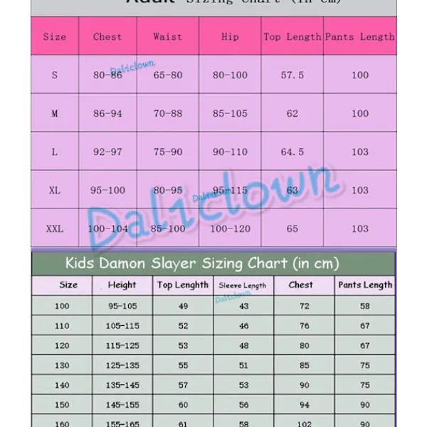 Anime Demon Slayer: Kimetsu No Yaiba Zenitsu Giyu Tanjirou Kamado Nezuko Cosplay Kvinnor Barn Män Kimono Uniform Cosplay Kostym. Var vänlig och dubbelkolla vår storlekstabell på vår produktsida och välj rätt storlek när du gör din beställning. Notera: 1. Måtten mäts för hand, det kan finnas 1-3 cm avvikelser. 2. Färgvisningen kan variera något beroende på olika bildskärmsinställningar. 3. Maskintvätt/handtvätt i kallt vatten, skonsam cykel, häng för att torka, varmt strykjärn. 4. Mått som byst/midja är en bättre guide än längd/vikt när du väljer rätt storlek. 5. Om du har några frågor om vår Demon Slayer-kostym, låt oss bara veta, vi finns alltid här för dig. Tillfällen: Vår Cosplay-kostym är perfekt för Halloween, cosplay, seriemässor, temafester, utklädning eller daglig användning. Det är den bästa Halloween-presenten till din familj, vänner eller dig själv.
