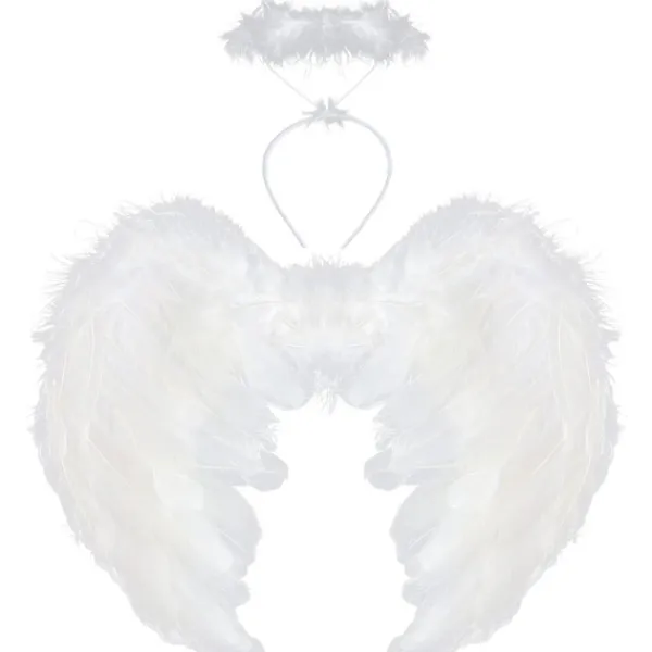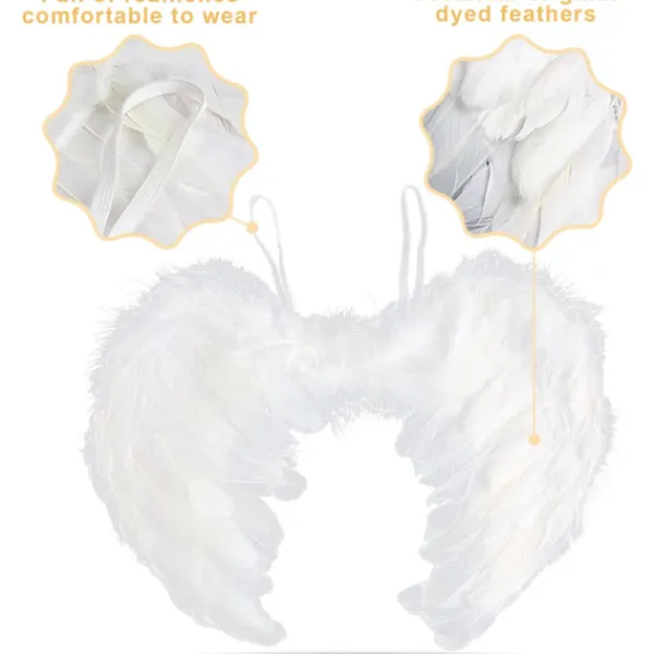 【Hög kvalitet】: Dessa änglavingar och halo är gjorda med äkta naturligt färgade fjädrar och design, säkerhet och miljövänlig, hållbar och färgäkta.