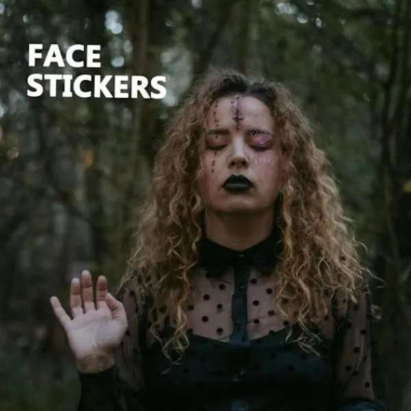 Retroestetik: Vintage och designen ger en unik och stilfull touch till din look, för dem som älskar den gotiska viben, ansiktsjuveldekaler, Halloween-ansiktsjuveler
