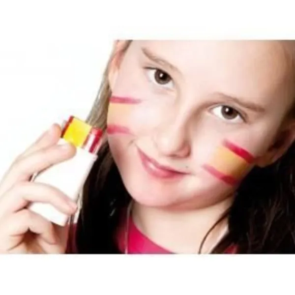 Ansiktsfärg i färgerna från den spanska flaggan, perfekt för barn. Idealisk för fester, sportevenemang eller karnevaler, den gör det möjligt att visa ditt stöd med stil.