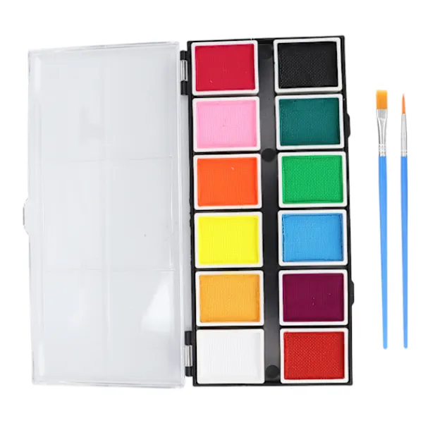 1、Kosmetisk Kvalitet: Ansiktsmålningskitet är säkert och giftfritt, ingen skada på huden, vilket överensstämmer med kosmetisk kvalitet, är luktfritt och inte lätt att vara allergisk, och kan användas av barn och vuxna 2、Snabbtorkande: Vattenlöslig målad färg torkar på cirka 1 minut och faller inte av när den berörs för hand, vilket undviker pinsamheten med blekning 3、Lätt att Använda: Vattenbaserade kroppsmålningsfärger, efter att ha aktiverats av rent vatten, kan användas med en borste eller svamp. Lätt att rengöra med tvålvatten eller sminkborttagare 4、12 Färger: Ansiktsmålningskitet har 12 färger, som kan användas i enstaka färger eller i färgmatchning, så du kan enkelt få en mängd olika stilar 5、Användningsområde: Används för kropps- och ansiktsmålning, Halloween, Jul, Cosplay, fester, konstscen, DIY-målning, målningsundervisning och andra scener är också tillgängliga