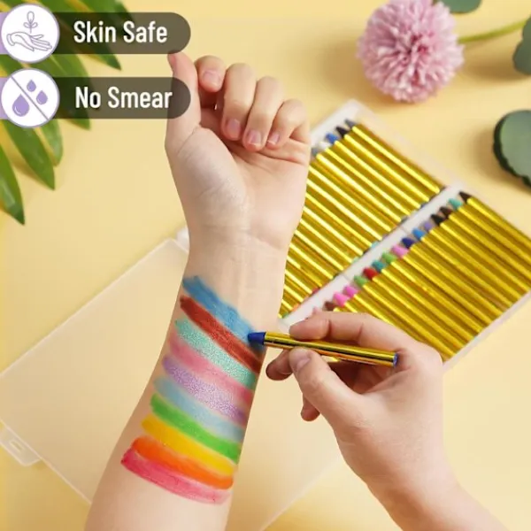 Perfekt för födelsedagar, festivaler eller maskeradfester, dessa ansiktsmålningskritor är en hit på alla evenemang där en touch av färg och fantasi välkomnas.
