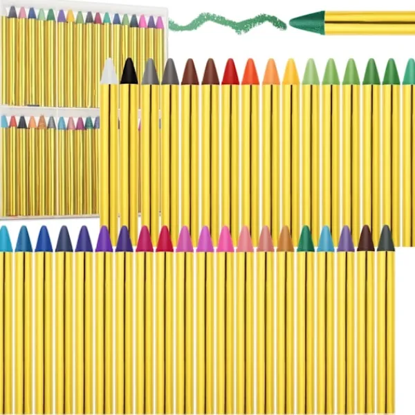 Ansiktsmålningskritor kommer i ett 36-pack och erbjuder ett kalejdoskop av livfulla färger för kreativa ansiktsmålningsdesigner och roliga förvandlingar.