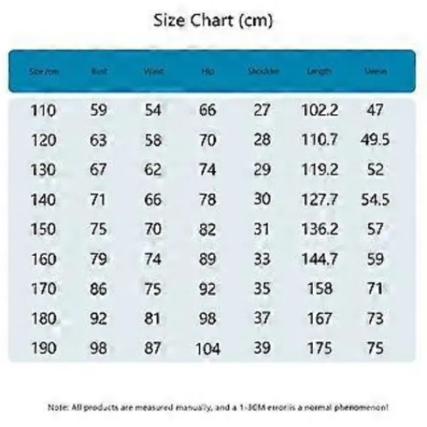 3. Vänligen tillåt 1-3 cm skillnad på grund av manuell mätning (notera 1 cm = 0,39 tum)