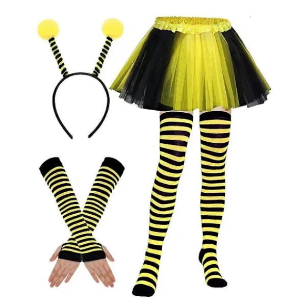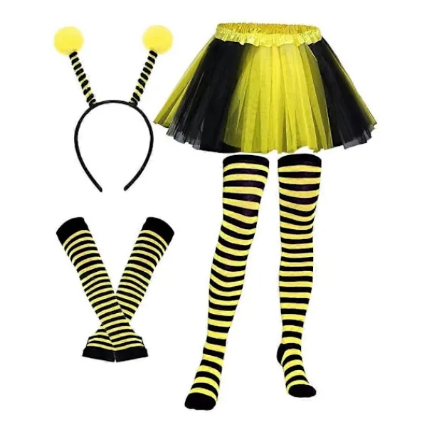 Exklusiva klänningstillbehör: Du får 1 svart och gul tutu, 1 antennhuvudband, 1 par randiga leggings och 1 par randiga ärmar, vilket är tillräckligt för att slutföra din outfit, och de ljusa färgerna kommer att göra dig till centrum för uppmärksamheten enkelt