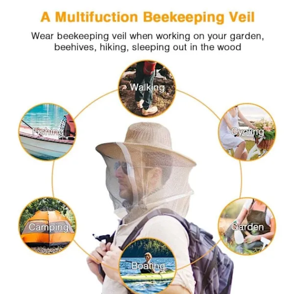 Mångsidig Biodlarslöjan och hatten är lämpliga för biodling, fiske, vandring, camping, båtliv, jakt och andra utomhusaktiviteter. Bär en biskyddande hatt när du arbetar i trädgården eller sover i skogen, en mygghhatt skyddar dig också!