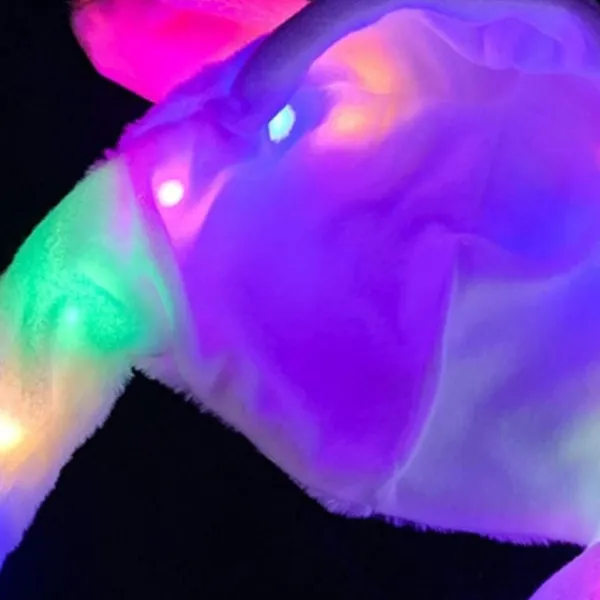 Denna upplysta kaninmössa har en inbyggd airbag i kaninens tass. Den kan styra öron skakning med en nypa.