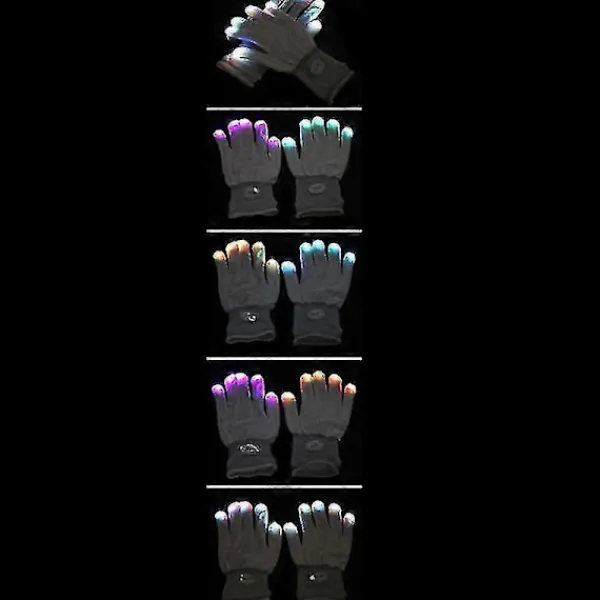 Funktion: LED-ljus lyser och blinkar i mörker eller under dagen med olika färger. Varje handske har 7 olika ljuslägen. Inkluderar ljuslägen som snabb blinkning, långsam blinkning, kontinuerligt ljus, avstängning, etc. Du kan ändra ljuslägena genom att trycka på knappen på handleden. Handskens handled är stretchig. Tillverkade av polyester med god luftgenomsläpplighet. Dessa handskar är inte tvättbara. Perfekt för konserter, raves, klubbar, hiphop, etc. En rolig leksak och present till vänner. Längd: ca 21 cm. Långfingrets längd: 7,5 cm. Handflatans bredd: 7,5-8 cm. Material: 95% Akrylfibrer. Batteri: 2 x CR2032 (ingår). Inkluderar: 1 par x LED-ljushandskar