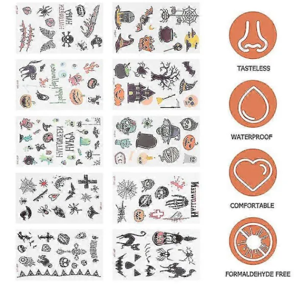 Gjord av miljövänligt material, mönstren på klistermärkena är verklighetstrogna och kan fästas på huden. De är säkra och luktfria.