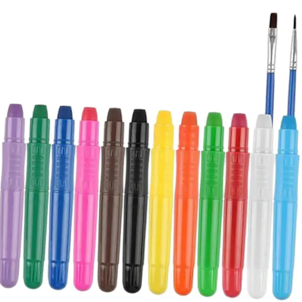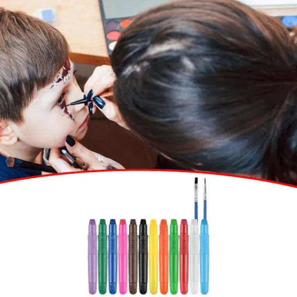 Nytt! Garanterat nya produkter, kvalitetshantverk och exklusiva erbjudanden. Köp nu så levererar vi din vara så snart som möjligt, ha en trevlig dag! 【Value Pack】: Detta set med ansiktsmålningskritor innehåller 12 vridbara målningskritor i en mängd olika färger, vilket gör att du fritt kan välja och skapa dina konstverk. Setet levereras också med två penslar för extra bekvämlighet