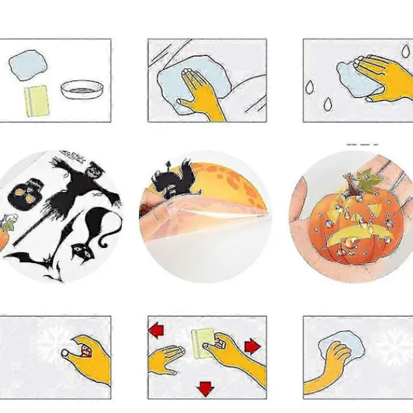 4. Halloween-fönsterdekorationer kan appliceras på alla släta ytor, såsom glasdörrar, skyltfönster, keramiska plattor i kök eller badrum, glas, kontor, studentrum eller butik, restaurang, stormarknad.