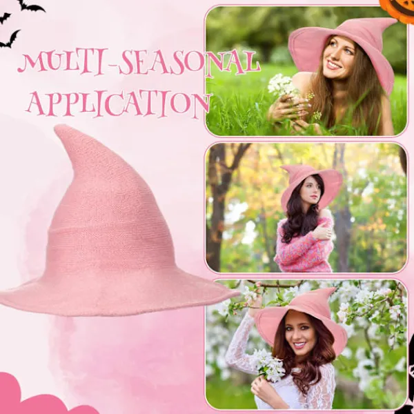 Stickad Häxhatt: Du kommer att få en rosa häxhatt med en spetsig topp och ett brett brätte, vilket är enkelt, elegant och modernt; den är lämplig inte bara som en festdekoration för Halloweenfester, karnevaler och maskeradbaler, utan också för vardagsbruk med de flesta kostymer.