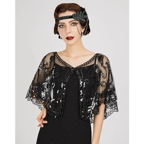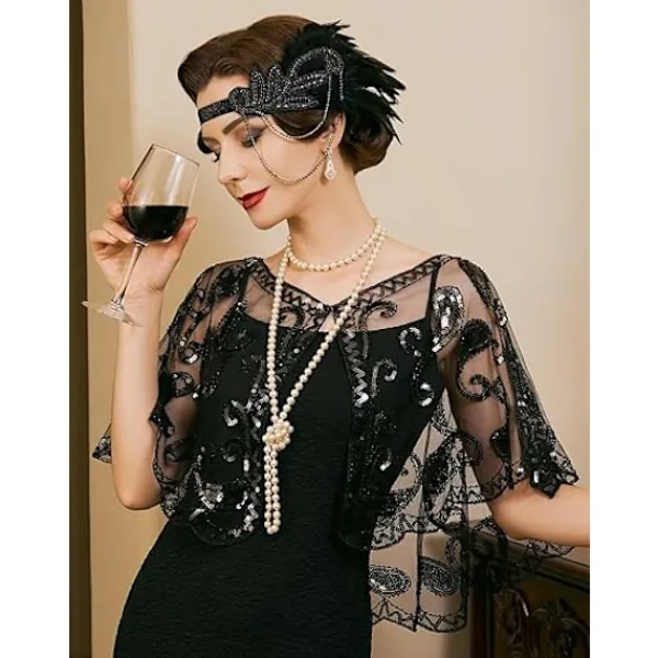 【1920-talstillbehör för kvinnor】1920-talssjalen är lämplig för Great Gatsby-bankett, fest med tema från 1920-talet, art deco-fest, 1920-talsfest, bal, cosplay-kostym, Harlem-kväll, maskeradfest, Halloween-klädsel eller något annat speciellt tillfälle.