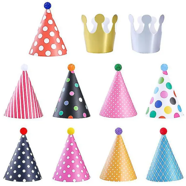 Födelsedagshattarna har ett elastiskt snöre för att hålla hatten på plats. Och det finns olika små bollar på den. En festlig festdekoration för att hjälpa gästerna att fira högtiden. Du kommer att ha en färgstark fest med dessa partyset.