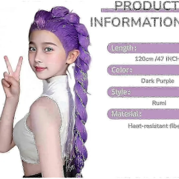[Premium Värmebeständig Fiber]: Tillverkad med högkvalitativ värmebeständig fiber, denna peruk tillåter säker styling med locktänger eller plattänger. Anpassa din look enkelt för att matcha karaktärens dynamiska utseende. [Karaktärsriktig Längd]: Cosplay Lila Peruker är designade för att matcha Rumis signaturfrisyr. Denna peruk erbjuder den perfekta längden, idealisk för cosplay-fotograferingar, konvent eller liveframträdanden. [Kostym Rumi Peruk]: Denna Rumi cosplay-peruk är noggrant utformad för att fånga varje detalj av den ikoniska karaktären med en livfull lila anime-stilfrisyr som speglar Mira/Rumis signaturlook [Brett användningsområde]: Kostymrekvisita är lämpliga för Halloween, karnevalsfester, temabanker, scenframträdanden, animationsshower, födelsedagsfester, animeutställningar, maskeradbaler. Det är också det bästa presentvalet för filmälskare. Det kommer att ge dig en fantastisk utklädningsupplevelse för alla tillfällen. [Måste-ha tillbehör]: Denna ultimata Rumi-peruk kommer att sätta pricken över i:et på din jägare Mira Cosplay-look med fantastisk noggrannhet.