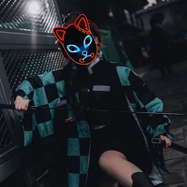 Lämplig för ålder: 3+. Premiummaterial: Demon slayer-masken är gjord av miljövänlig ABS av högsta kvalitet, som är realistisk, färgstark, hållbar och lätt att bära och samla..3 Ljuslägen: Demon slayer Led-mask har 3 ljuslägen, konstant på, långsam blinkning och snabb blinkning. Alla glödande trådar är gjorda av EL-trådar, INGET värmeproblem, INGEN skada på dina ögon och kropp..En storlek: Storleken på denna LED Halloween-mask är 17,8 cm * 22,9 cm, och den har en elastisk rem, vilket gör att den passar de flesta..Användningstillfällen: Denna demon slayers fox mask tanjiro är lämplig för anime cosplay, maskerad, karneval, jul, Halloween, karneval, bal, skolfestival, sekundär underhållning, rollspel etc..Idealisk gåva: Denna japanska anime cosplay-mask är ett idealiskt val för rollspel, den kan verkligen återställa animekaraktärer och lägga till så mycket roligt till dina cosplayfester. LED Cosplay-masken är den bästa presenten och samlingen för demon slayer anime-fans.