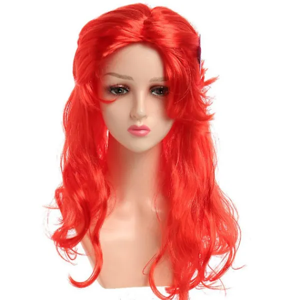 Den lilla sjöjungfrun kostym peruk för vuxna kvinnor lång vågig röd cosplay hår peruk cosplay tillbehör för Halloween fest