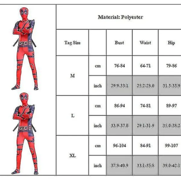 * Deadpool halloween kostym är gjord av bomullsblend, super stretchmaterial perfekt passform original karaktär.